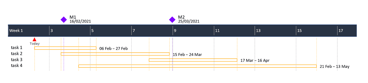 Sometimes you just need a simple timeline, other times you need more complex structures like the famous Gantt chart.