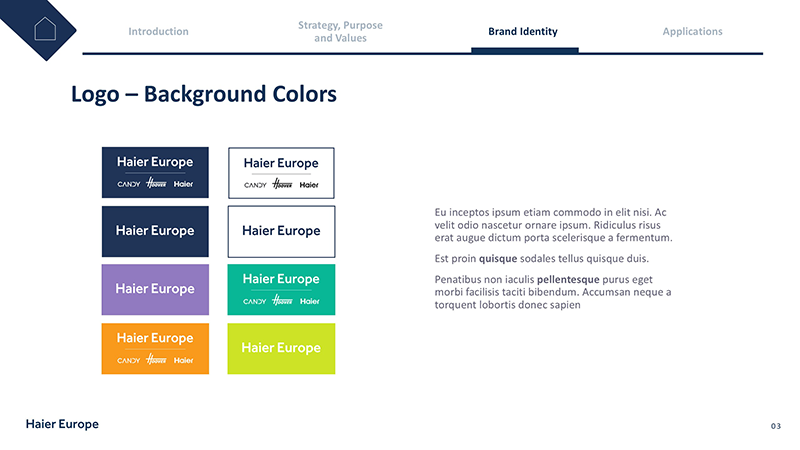 Haier ha recentemente rinnovato due dei suoi loghi chiave e questo ha richiesto un aggiornamento delle linee guida interne del marchio per riflettere questi cambiamenti. L’obiettivo era garantire che il documento aggiornato integrasse senza problemi i nuovi elementi del marchio, migliorando al contempo la facilità d’uso per i team interni.