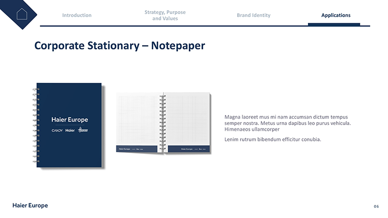 Haier, leader globale nel settore degli elettrodomestici, ha affidato al Team MLC il compito di rinnovare le proprie linee guida interne del marchio. L’obiettivo era migliorare l’usabilità e modernizzare il documento, mantenendo al contempo gli elementi fondamentali della loro identità di marca.